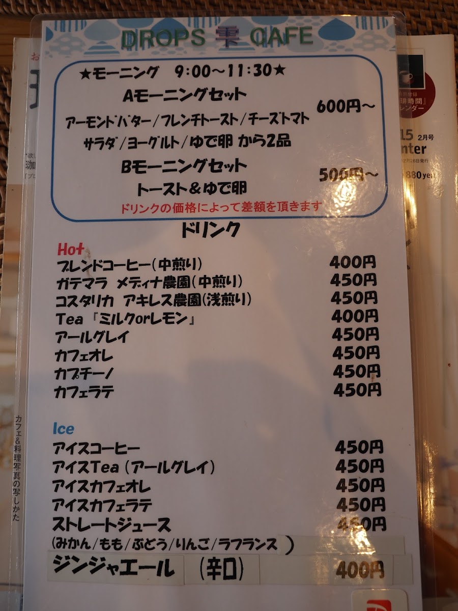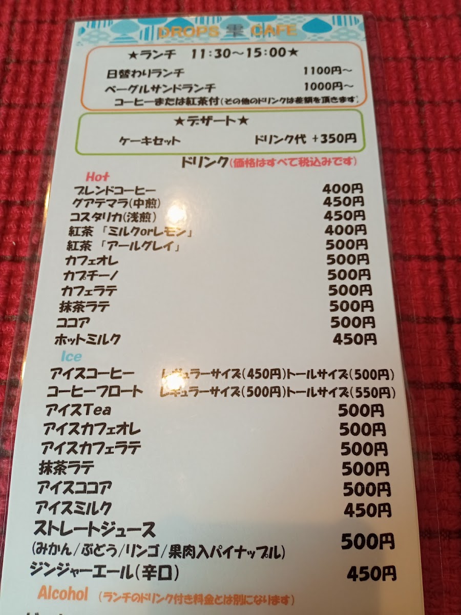 DROPS CAFE 雫 Menu
